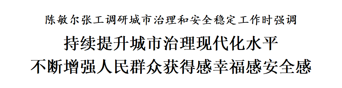陳敏爾、張工在調(diào)研中強(qiáng)調(diào),要認(rèn)真學(xué)習(xí)貫徹習(xí)近平總書記在中央城市工作會議上的重要講話精神,深入落實習(xí)近平總書記視察天津重要講話精神,踐行人民城市理念,強(qiáng)化黨建引領(lǐng)基層治理創(chuàng)新,深化大城細(xì)管、大城智管、大城眾管,著力提升城市治理現(xiàn)代化水平,不斷增強(qiáng)人民群眾獲得感、幸福感、安全感。圍繞籌備上合組織峰會,在周全安全上下功夫,強(qiáng)化問題導(dǎo)向、目標(biāo)導(dǎo)向、結(jié)果導(dǎo)向,提升執(zhí)行力,把握時度效,落實工作方案,完善應(yīng)急預(yù)案,健全工作體系,優(yōu)化指揮調(diào)度機(jī)制,全鏈條推動各項任務(wù)有序開展。堅持點線面網(wǎng)相結(jié)合,抓好社會面整體防控,強(qiáng)化風(fēng)險隱患源頭治理,建好管好用好綜治中心,發(fā)展壯大群防群治力量,加強(qiáng)網(wǎng)格化服務(wù)管理,深化矛盾糾紛多元化解,完善城市運(yùn)行保障和應(yīng)急管理體系,嚴(yán)格落實安全生產(chǎn)責(zé)任制,有力保障全市域、全時段、全要素安全。深化道路交通綜合治理,加強(qiáng)交通組織和疏導(dǎo),持續(xù)提升交通態(tài)勢感知力、交通擁堵疏解力、交通事件反應(yīng)力,確保道路交通安全暢通。提高信訪工作法治化水平,完善思路舉措,注重分類指導(dǎo),提升信訪干部的群眾工作能力、法律政策水平,增強(qiáng)信訪工作實效,更好維護(hù)群眾合法權(quán)益、服務(wù)全市工作大局。