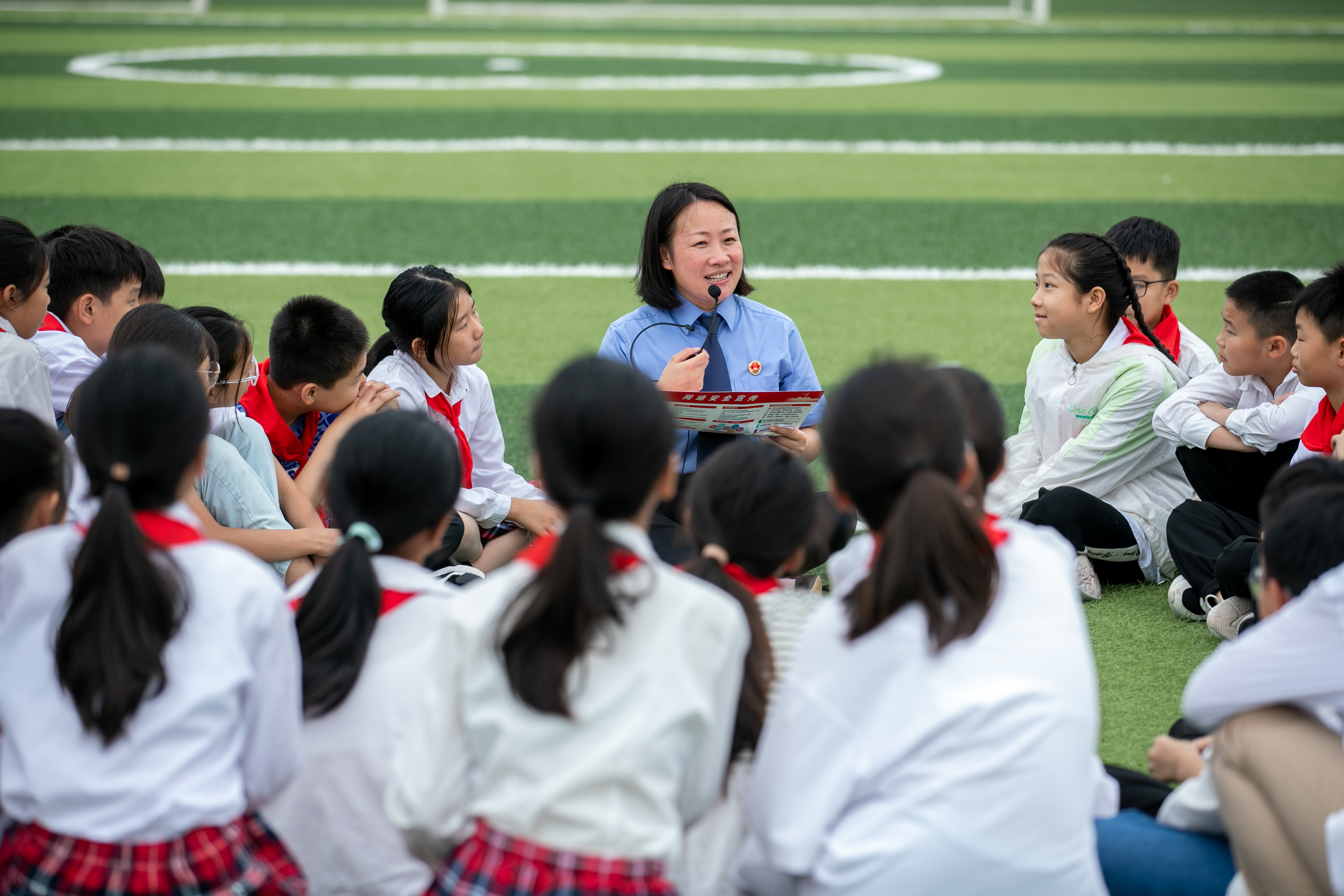 江蘇省興化市檢察院未成年人法治宣講團的工作人員走進興化市文峰小學(xué),通過講故事的方式給學(xué)生講解網(wǎng)絡(luò)安全知識。新華社照片(2023年9月14日)周社根 攝